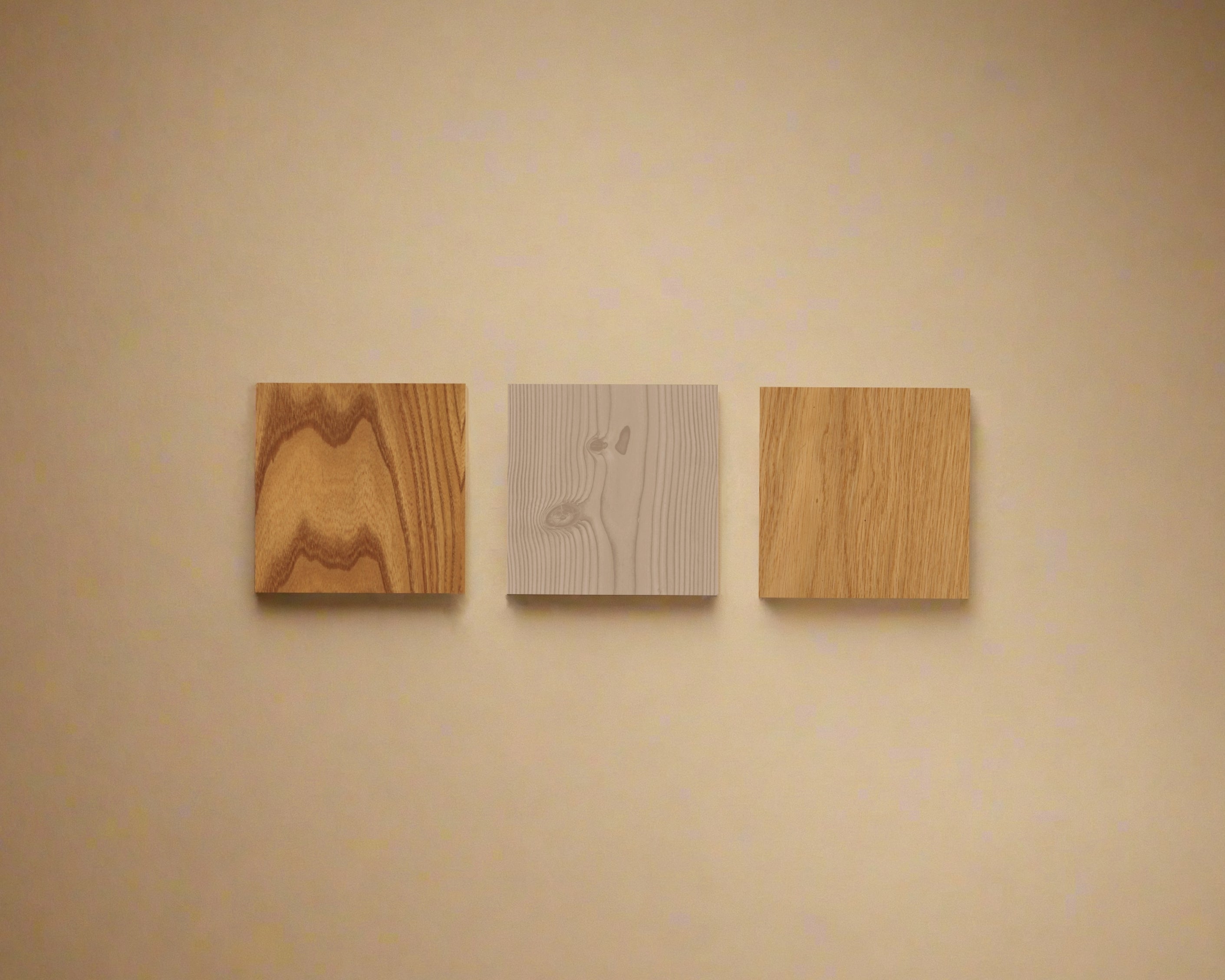 We offer wood samples so you can experience the textures, tones, and quiet presence of our finishes in your own space.